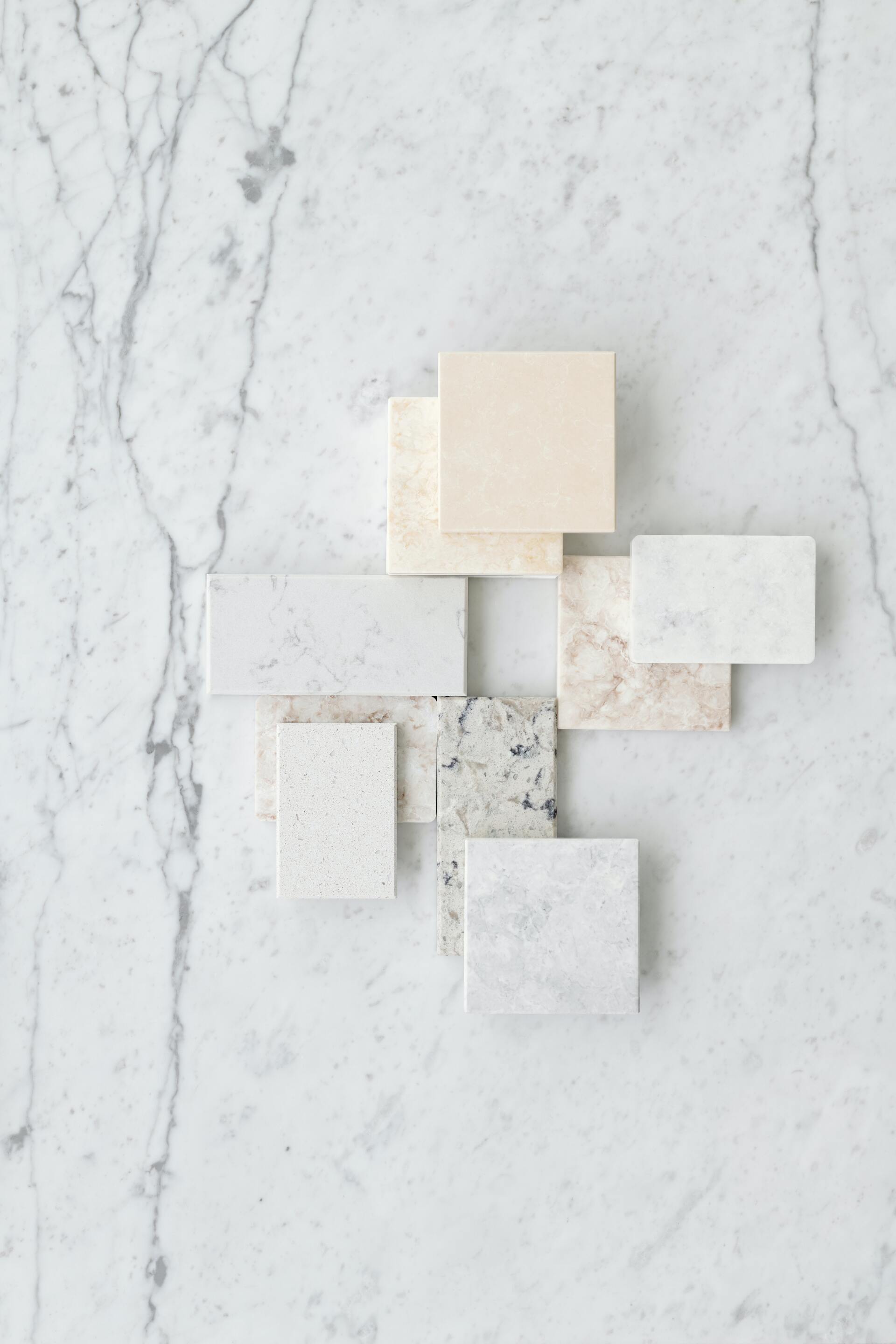 Las encimeras de cuarzo son piedras de ingeniería hechas por el hombre formadas combinando alrededor del 90 por ciento de cuarzo molido con ocho a 10 por ciento de resinas, polímeros y pigmentos. Esto forma una superficie muy dura parecida al granito. Dado que las encimeras de cuarzo están diseñadas, hay muy pocas imperfecciones, si es que las hay.